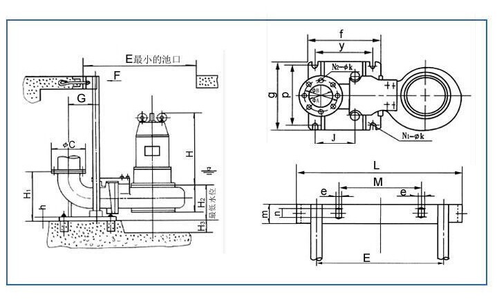 將出水管固定在污水池的底部,在池頂安裝配套的支撐件,用雙內(nèi)導軌使泵的出口與出水管自動對正。獨特設計的出口連接確保了在泵和底座之間的連接處絕無泄漏。此安裝方式可避免檢修時工作人員進入污水池,既保護了環(huán)境,又降低了維修成本與工人強度。